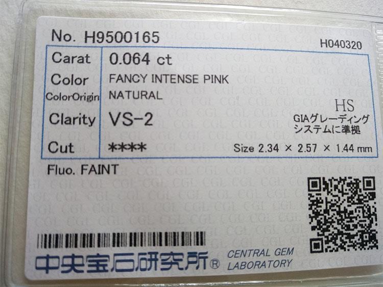 0.064 ct Fancy Intense Pink VS2 CGL