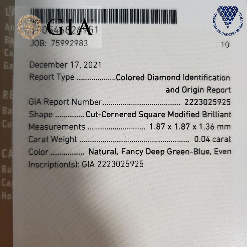 0.04 ct FANCY DEEP GREEN BLUE GIA