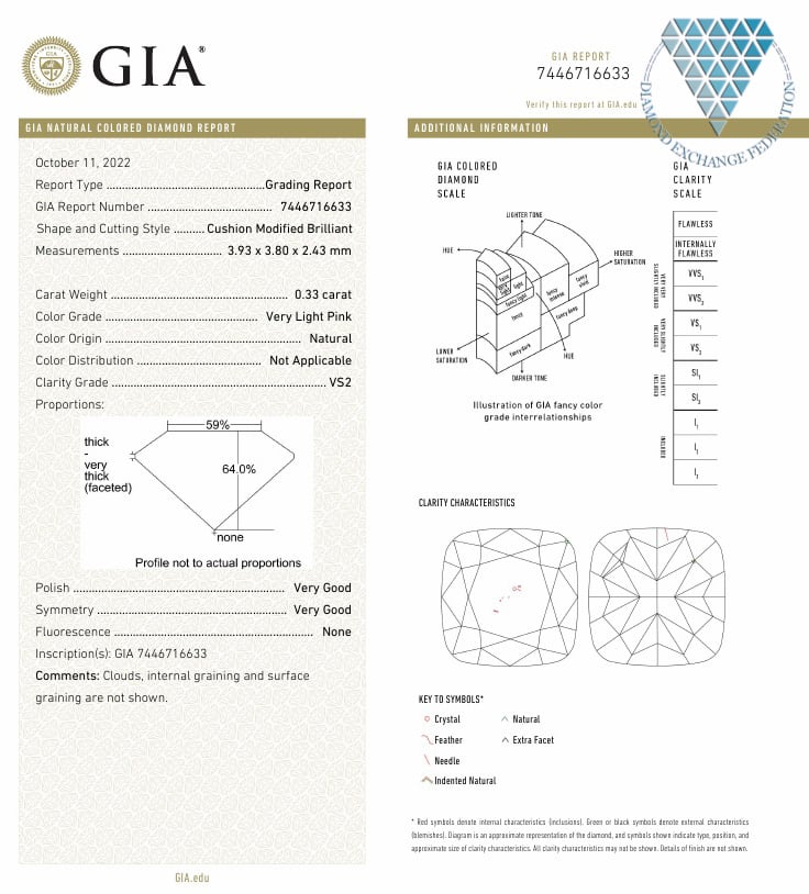 0.33 ct VERY LIGHT PINK VS2 CUSHION GIA 天然 ダイヤモンド ルース