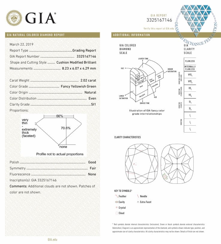 2.02 ct FANCY YELLOWISH GREEN SI1 CUSHION GIA 天然 ダイヤモンド ルース